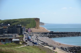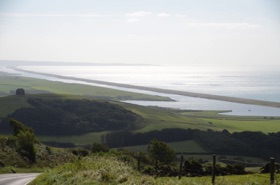 Past St. Catherine's Chapel, Abbotsbury, the Subtropical Gardens, until it reaches West Bay, just south of Bridport. Officially a Tombolo.